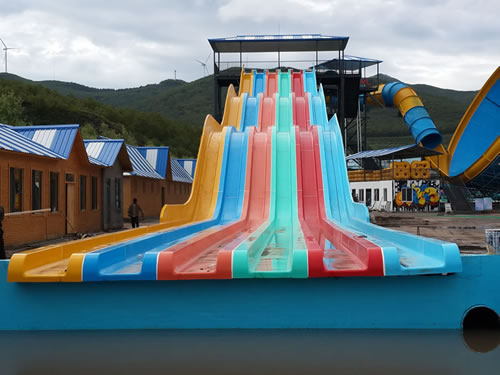 彩虹競速滑梯|大型水滑梯彩虹競速滑梯是一種非常受歡迎的水上樂園游玩項目,它通常設計為多道并列的滑梯,游客可以同時出發進行比賽,體驗刺激與樂趣。彩虹競速滑梯一般為3~10道并列設計,參與者可以用身體或浮墊滑行。滑道中間會設計一...